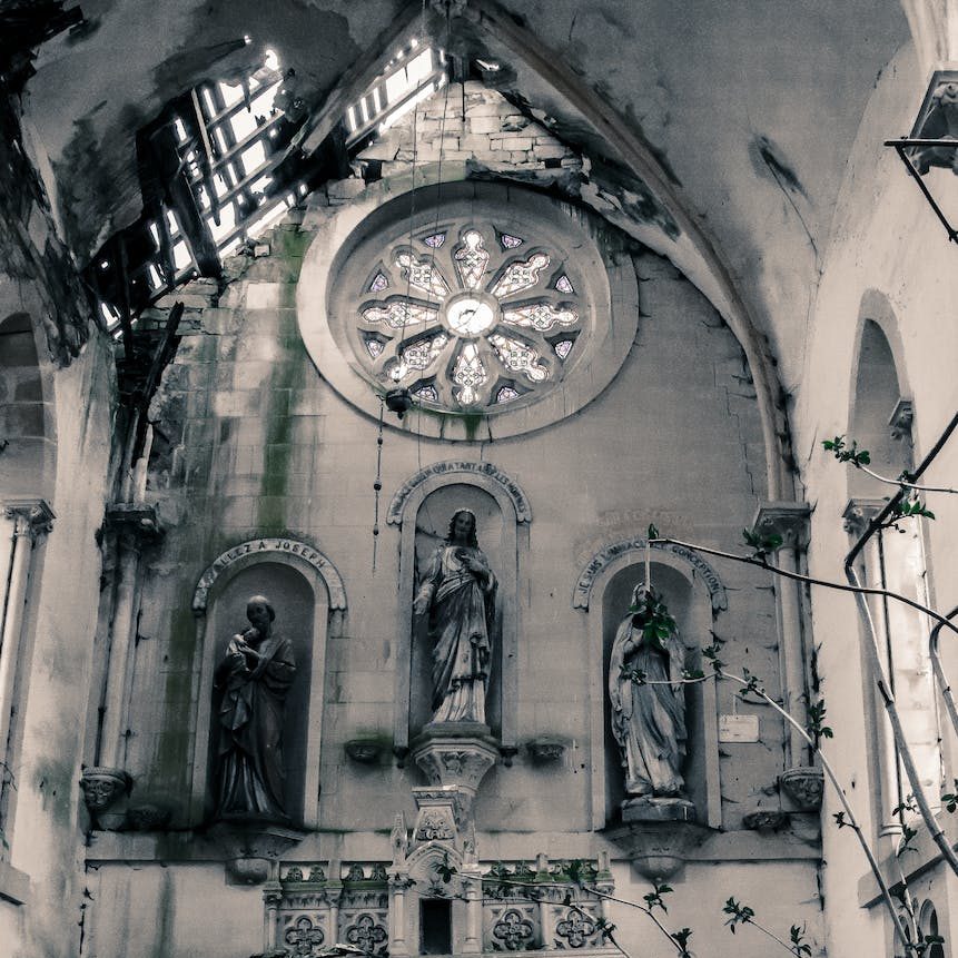 scaffold blots the sun staunch cathedral walls under reconstruction